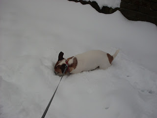 Dit is niet het kadootje hoor hihihi maar had nog een grappige foto van de hond in de sneeuw hij staat er echt tot zijn buik toe aan in niet altijd fijn voor de honden.